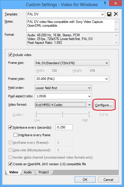Oznacis - Video for Windows - PAL DV (ili PAL DV Widescreen)...ne znam o kakvom video sadrzaju se radi...i pritisnes - Custimize Template...: