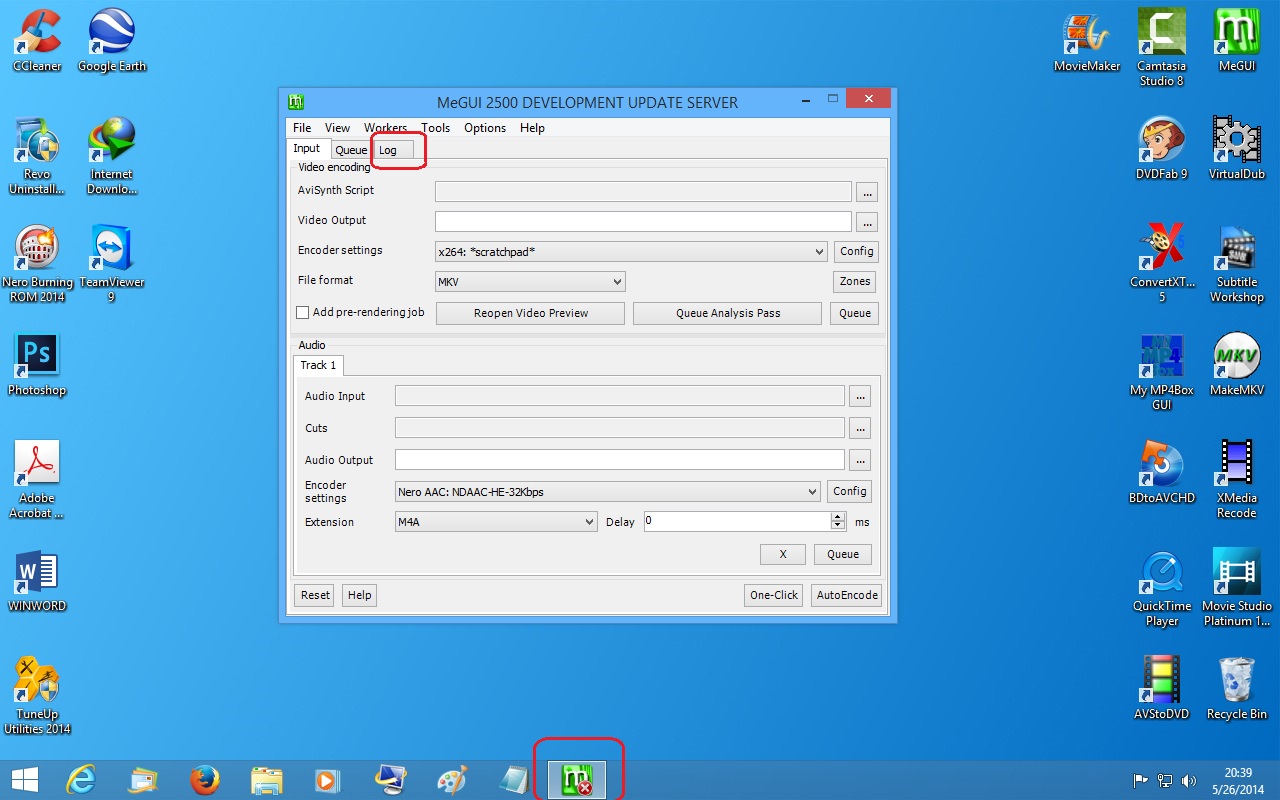 po drugi put...otvori "log" karticu u MeGUI i procitaj zasto izbacuje gresku (error) to jest crveni (X) :