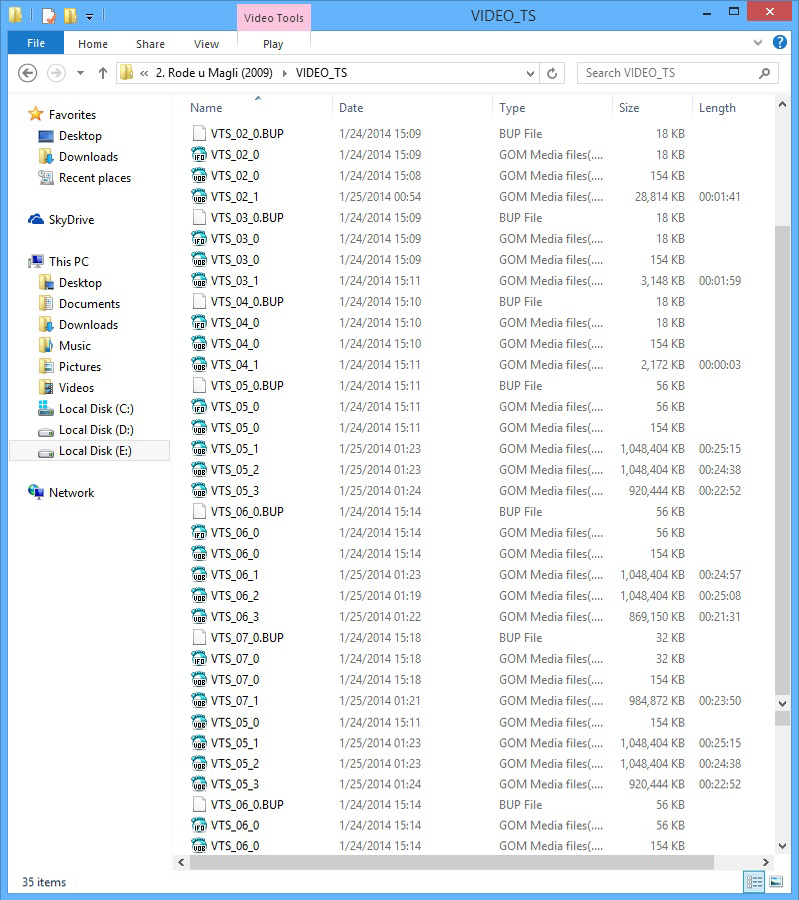Od gomile raznih programa za ovo koristio sam "MakeMKV" koji iz VIDEO_TS foldera "pokupi" audio i video fajlove i mux-uje ih u mkv container-e...pa ovi DVD,to jest sada mkv izgledaju ovako :