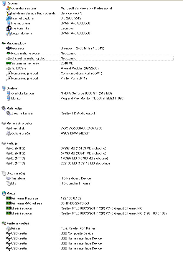 Moj sistem info je u prilogu.